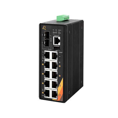 12-Port Industrial PoE+ Managed Fast Ethernet Switch | 8 ETH + 2 ETH + 2 SFP