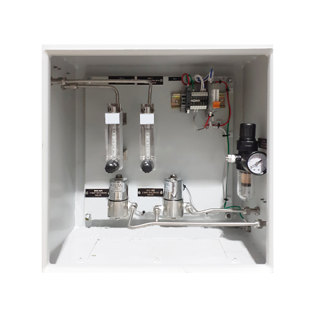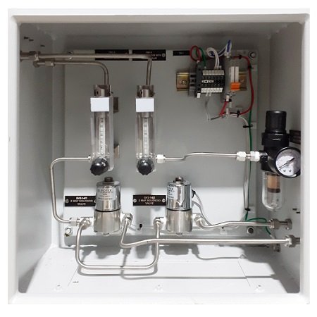 - This system is for monitoring and controlling oxygen concentration in the combustion gases of a large-size boiler or heating furnace. Clean (dry) air (21%O2) is used as the reference gas and the span gas for calibration. Zero gas is fed in from a cylinder during calibration. The gas flow is controlled by the flow setting unit with the manually setting of the ball valve.