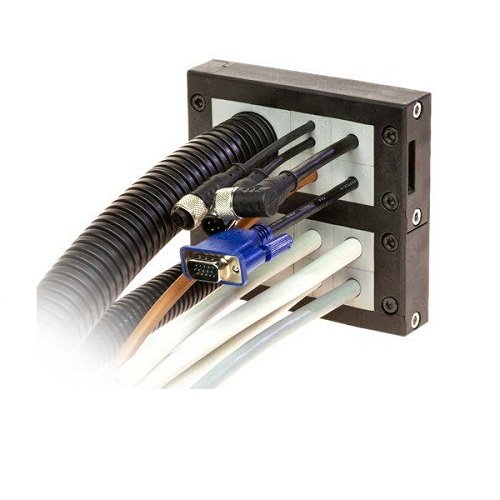 The DES 16MX splittable frames family is a modular solution for installations where a big quantity of cables need to be routed through electrical cabinets walls or panels.This solution is not only modular but it is also a general result that can be adopted as main cables entrance. Both cables with or without connector can be routed (32 for each module) and future updates can easily be organized in the cheapest and fastest way.