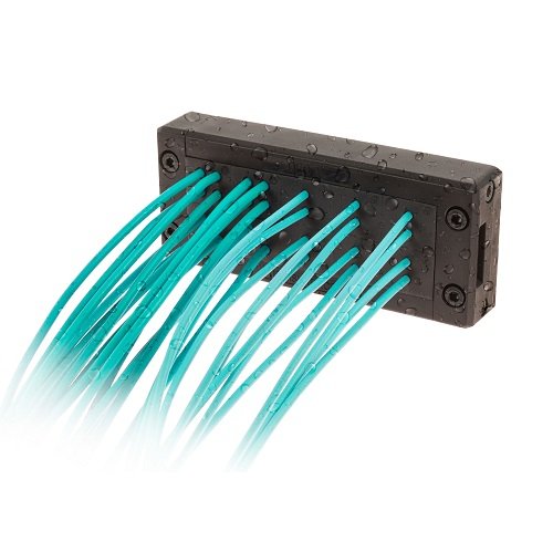 The DES 24 cable entry system consists of a splittable frame designed to accommodate small (SPP), multiple (X) or large (SPG) grommets for cables with and without connectors. The grommets can be freely positioned into the frame. With all combinations of grommets, single, double, quadruple, big, the IP66 and NEMA 4X* are guaranteed. The overmolded gasket guarantees faster installation times and the complete V0 self-estinguishing of the system.