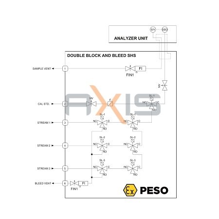 ASPL Double block and bleed is a special design to ensures that cross-stream contamination does not occur in multi-stream sample systems which are caused due to is leakages from switching valves and areas of unpurged tubing common to more than one stream.