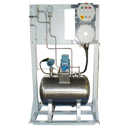 The system is designed per process return requirements. The size, shape and MOC of vessel is customized to customer requirement. A standard sample recovery system includes a base frame, recovery tank, Level Indicator/Transmitter with option of high and low alarm level indications, positive displacement pumps, relief valves The motor is driven by a locally installed Electrical Control panel with emergency push buttons and selector switch for local / remote control selection for pump start/stop. The remote selection can be customized. When high level detected pump starts to return sample to process. Pump running stop when low level detected. High high and low low level trip contacts provided for system trip.