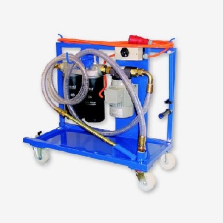 Before putting hydraulic or lubrication systems into service, the entire system should be flushed. Depending on the application, low viscosity flushing oil or the actual operating oil may be used. The purpose of flushing the system is to protect system components externally via mobile filtration units to ensure residue from assembly is removed. However, these mobile filtration units are also used to for the initial system fill or when changing the oil. The filtration units are quiet and compact, with an easy to transport design.